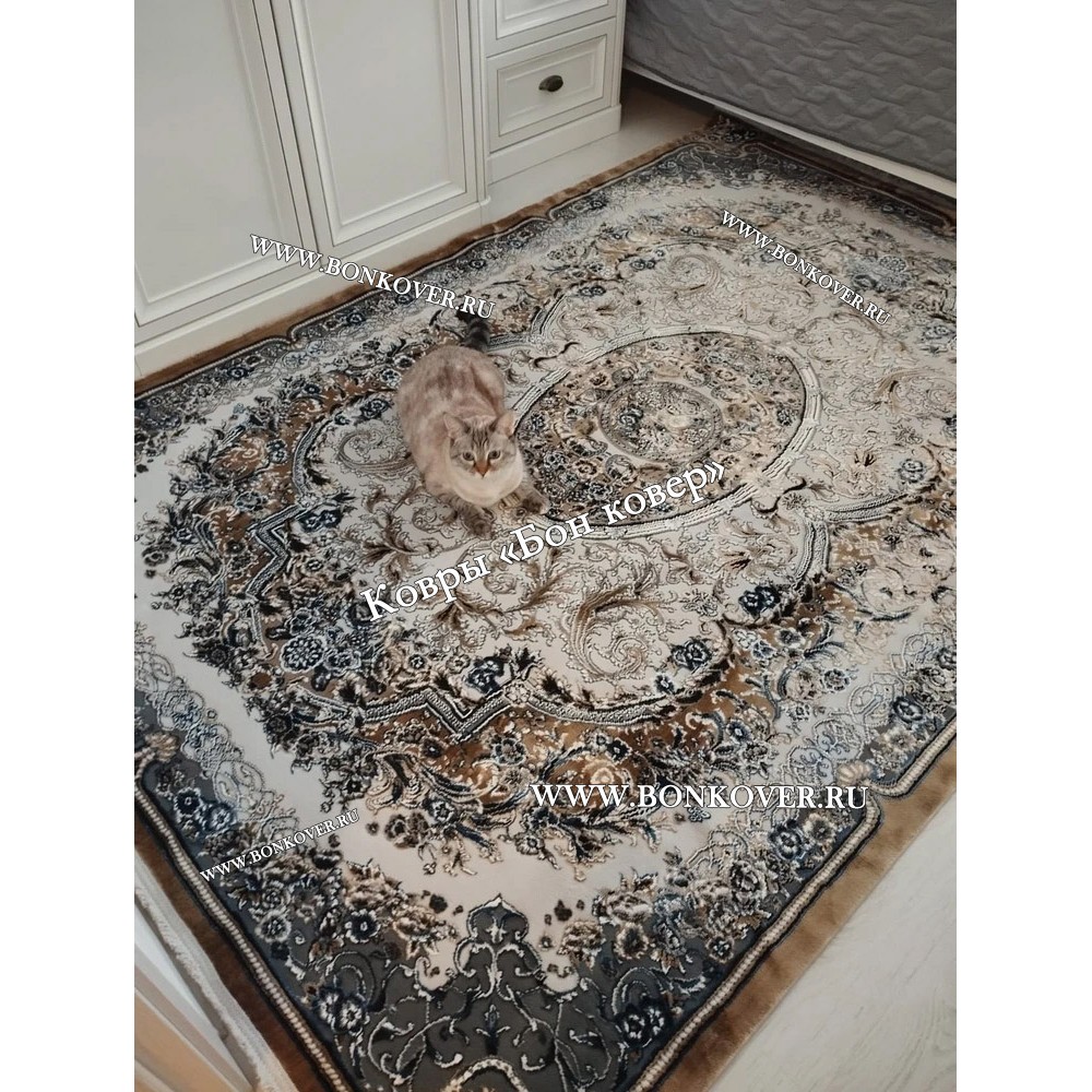 08.12.2021 Читать полный отзывДолго искали смотрели на разных сайтах , в итоге ваш ковер приглянулся больше всего . Доставили в рулоне на следующий день , оплатили при получении . Идеальный вариант , цвет темно синий с переливом - рисунок очень выйгрышно смотрится !