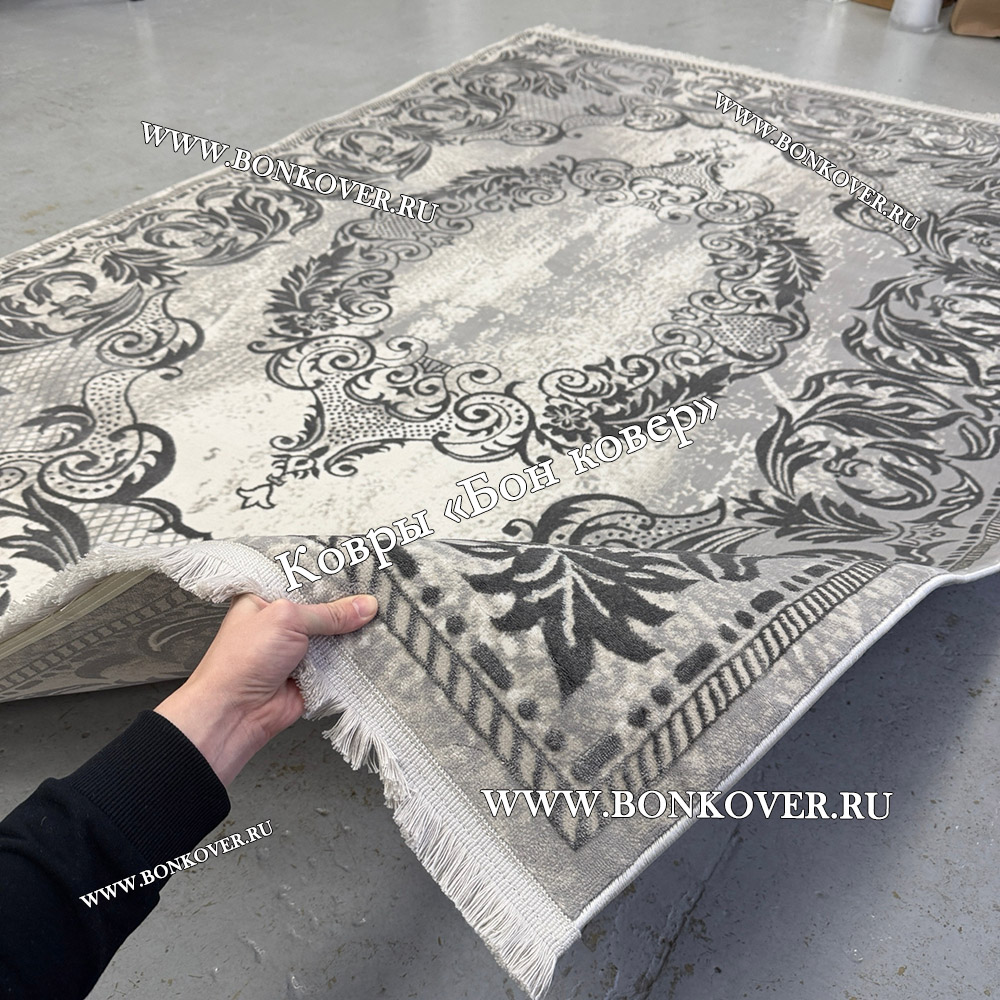 Изящный Ковер Турция Для Гостиной Дизайн 96 Серый наполняет интерьер вашего дома теплом и уютом, гармонично сочетает в себе изящество и красоту. Он изготовлен из экологически чистого сырья, прочный и долговечный.
