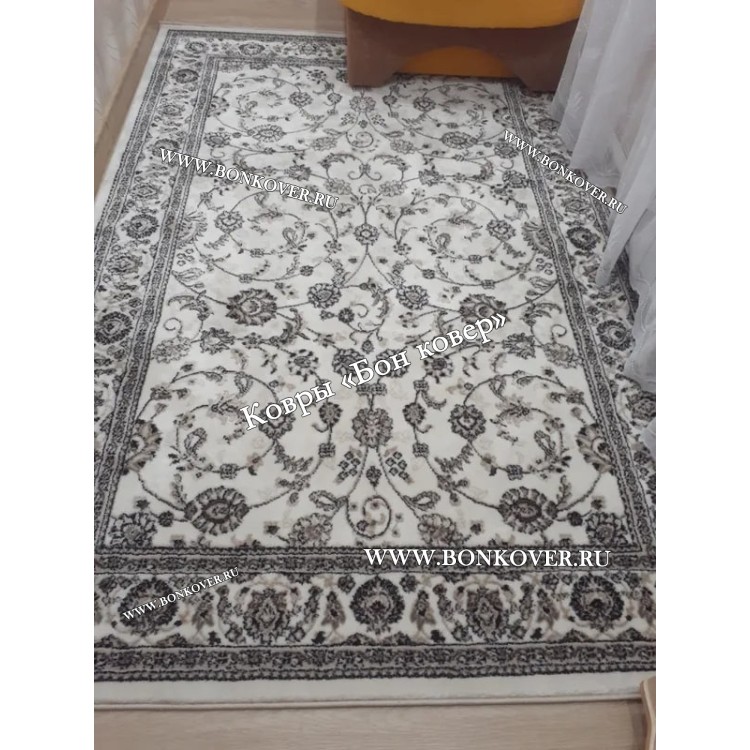 Выбрал этот ковер, потому что захотелось восточных мотивов. Выбором доволен. В ковре присутствуют разные цвета, нельзя определить какой-то общий фон. Плотность и толщина стандартная, как других ковров. Ворс не дает бликов в виде искорок, как некоторые искусственные ковры. Качество, на мой взгляд, хорошее.